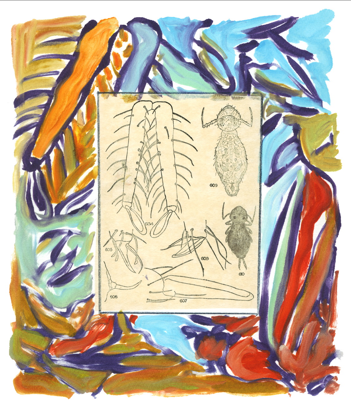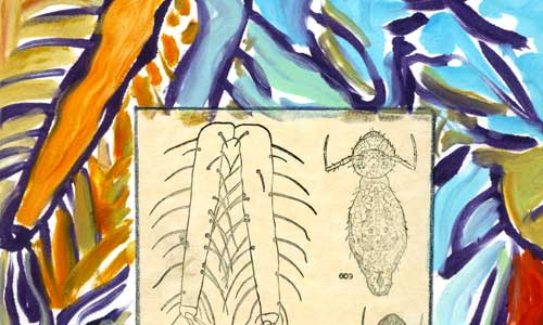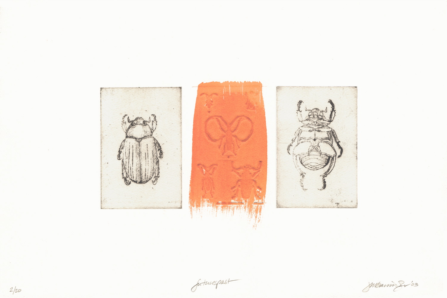 The Dingbat Portfolio is a group of 16 fine art prints created in an edition of 20. Dingbats were traditionally used to decorate text when setting type in a letterpress. Inspired by line blocks and dingbats from the collection of Peter Kahn, late Emeritus Professor of Printmaking and Art History at Cornell University, artist associates of The Ink Shop and Olive Branch Press of Ithaca, New York, chose from the collection to create the works in this show. After exchanging prints with each other, the artists gave four editions to the non-profit Printmaking Center to sell.
